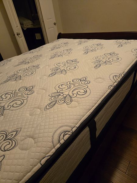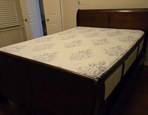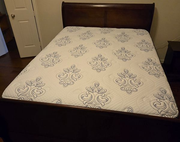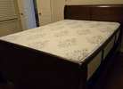 Wood frame, headboard, queen size mattress and box spring included! Used in a guest room. Queen size, complete cleaned set!…$100