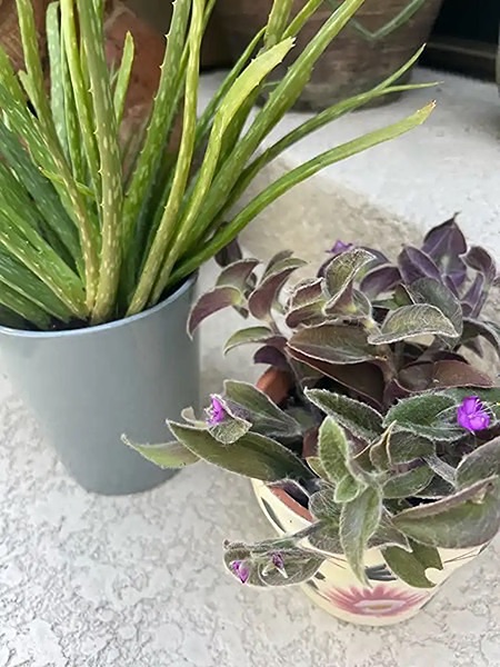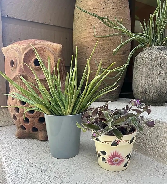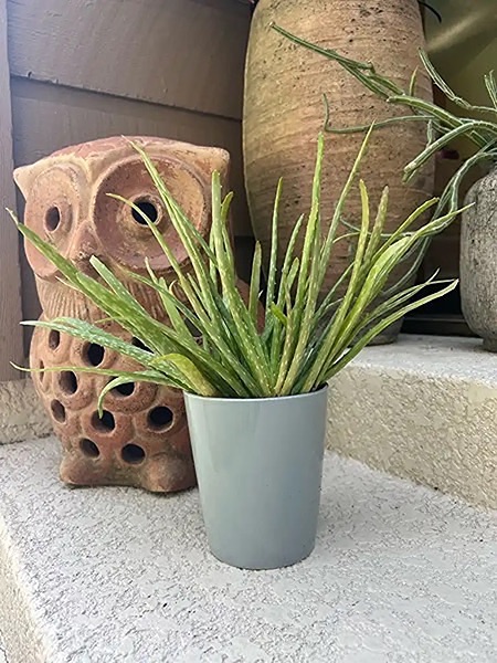 -Aloe Vera in grey pottery (this guy is loaded with aloe Vera plants!)…$20