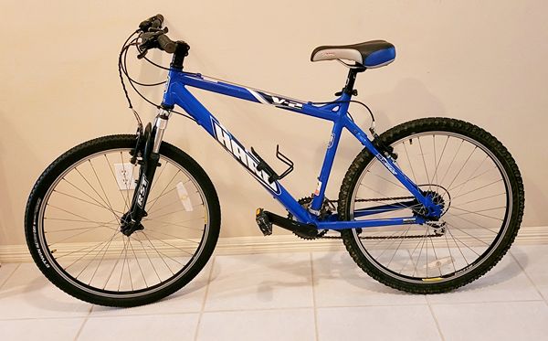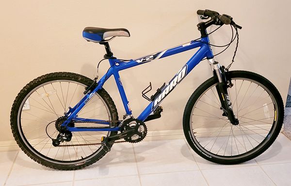 Haro V-2 mountain bike. Aluminum frame Med 19.5in. 26-inch wheels. 24-speed 8-gear freewheel.