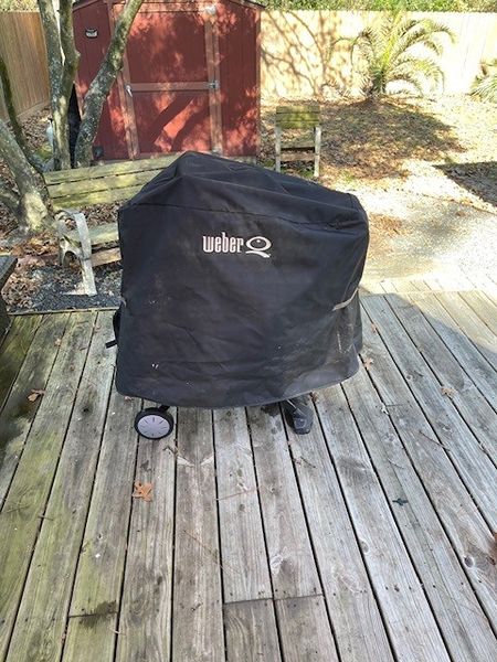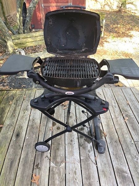 Weber Portable Liquid Propane grill. Includes two cans of propane and cover.|