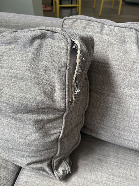 The sectional is comfortable and sturdy with lots of life left. A couple of cushion seams are beginning to come undone (see photos). This can be easily repaired or left as-is.