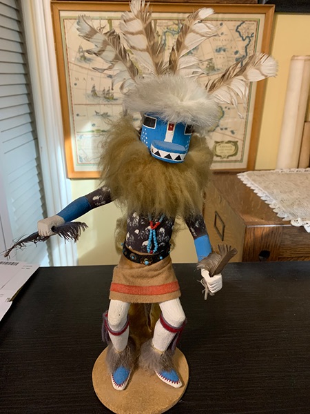 For sale is a whimsical Kachina doll from New Mexico. Features bright colors, beadwork, fur, and feathers. Stands approximately 16" tall and 8" in width.