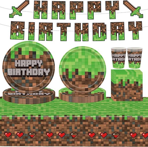 Minecraft Pixel Birthday Decorations Kit & Party Favor Bags 94 Pcs NIP