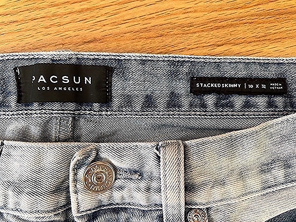 Light wash ripped jeans from PacSun.  Stacked skinny 30 x 32, male