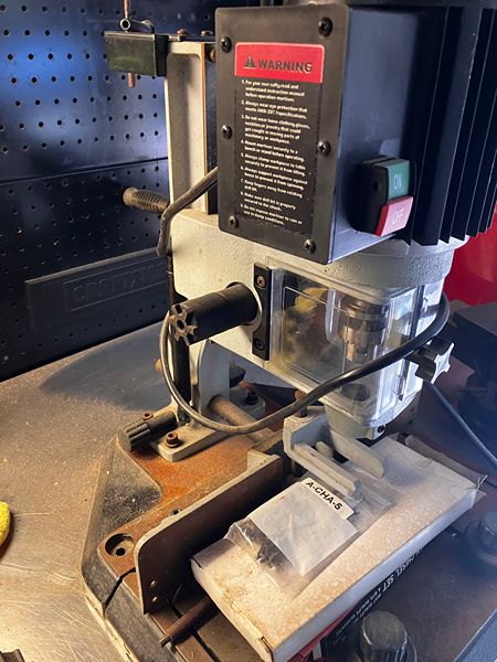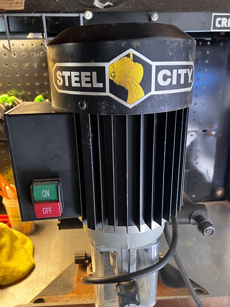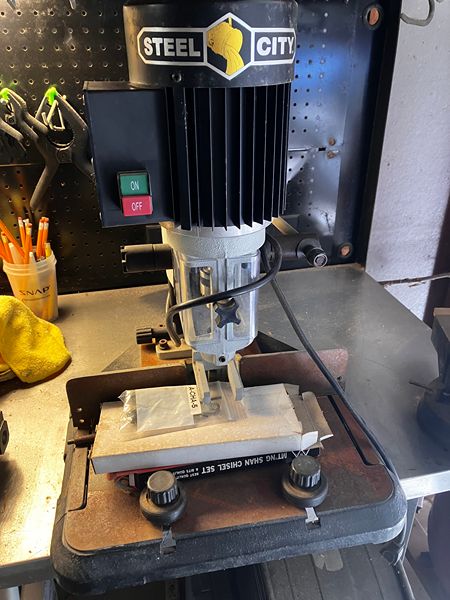 Bench top mortising machine made by Steel City comes with 6 mortising bits. Machine woorks fine