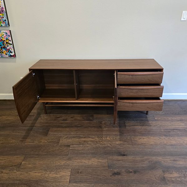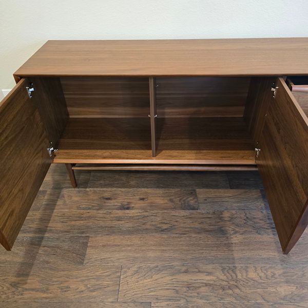 Lenia Walnut Sideboard. Located in The Woodlands 77381. Crossroad kuykendahl road and research forest drive. Delivery is available for a fee.