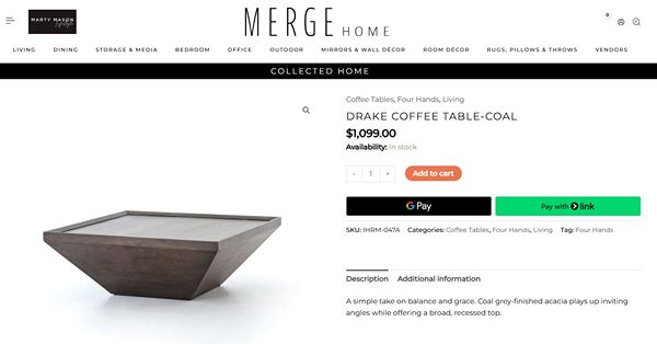 Four Hands Drake Coffee Table. Located in The Woodlands 77381. Crossroad kuykendahl road and research forest drive. Delivery is available for a fee.