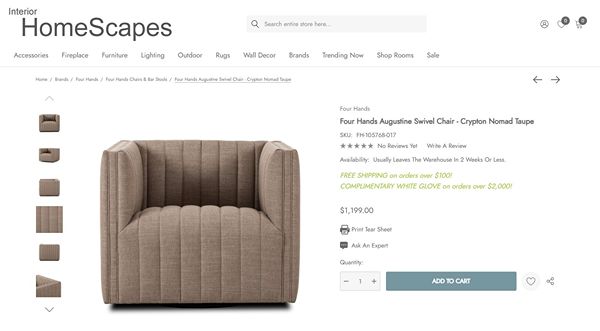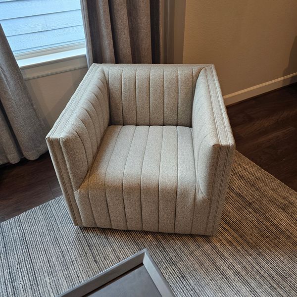 Four Hands Augustine Swivel Chair. Located in The Woodlands 77381. Crossroad kuykendahl road and research forest drive. Delivery is available for a fee.