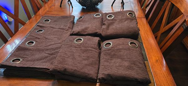 5, chocolate brown, black out curtains. Energy efficient and in perfect condition. 52x92