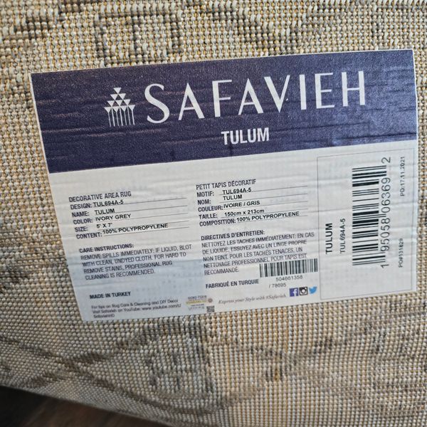 SAFAVIEH Tulum Collection Area Rug 5x7. Ivory & Grey, Moroccan Boho Design. Located in The Woodlands 77381. Crossroad kuykendahl road and research forest drive.