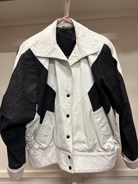 Beautiful white and black textured leather women's jacket. Medium. Excellent condition.