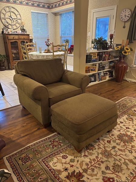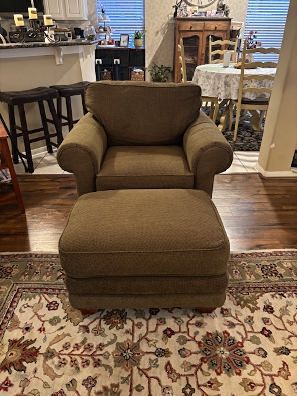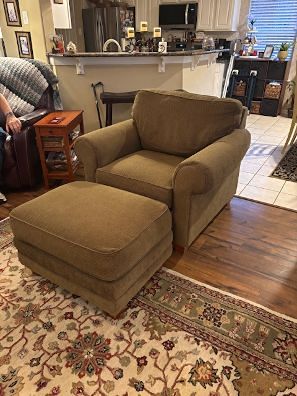 Comfortable arm chair made in heavy duty fabric, made by LazyBoy. Taupe color.