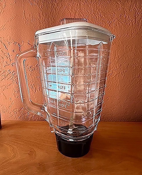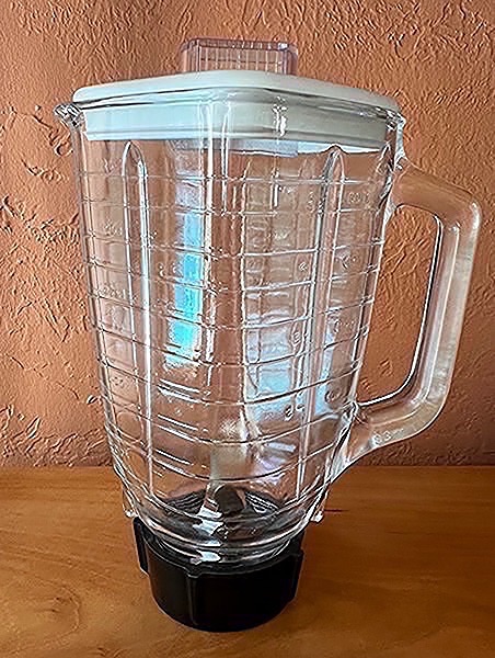 Replacement 5 cup glass blender jar with lid and base.  I believe this is Oster brand…$15 firm