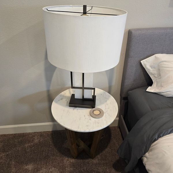 Crestview Table Lamps Marble and Mango Wood End Tables. Located in The Woodlands 77381. Crossroad kuykendahl road and research forest drive. Delivery is available for a fee.