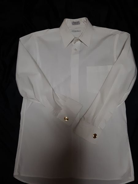 You could spend $20 at a retail store now and get a marginal, basic white shirt, or you could own this outstanding designer, French cuff shirt.