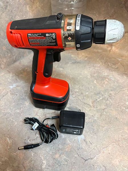 Used Black & Decker drill, comes with charger and battery. Model: BD12PS Type 1 12V DC. 1200 RPM High Speed. Barely used AS IS📌📍
