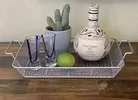 17” x 10 3/4” use for a coffee bar, office, tabletop, potted plants, classroom (shown with printer paper) etc. Like new condition…$15 firm