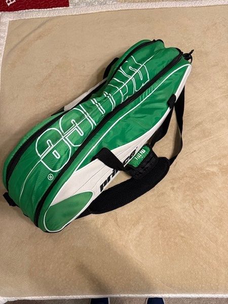 Nice clean tennis bag - holds up to 4 rackets. handy side zip pocket compartment for your misc items.