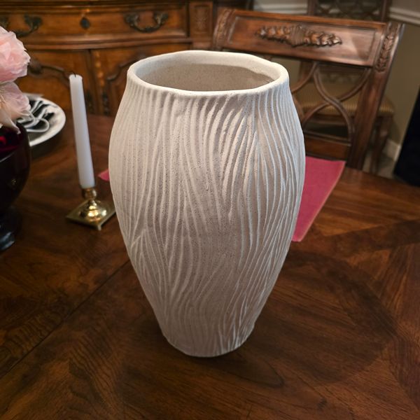 Large White Textured Vase. Located in The Woodlands 77381. Crossroad kuykendahl road and research forest drive.