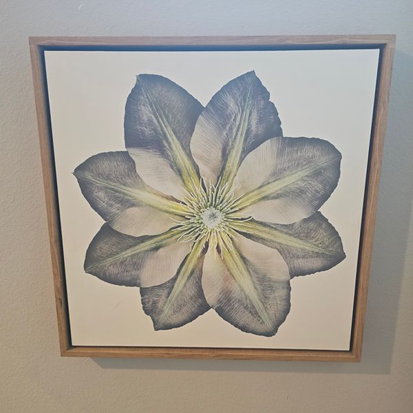 Wall Art Clematis On Black. Located in The Woodlands 77381. Crossroad kuykendahl road and research forest drive. Delivery is available for a fee.