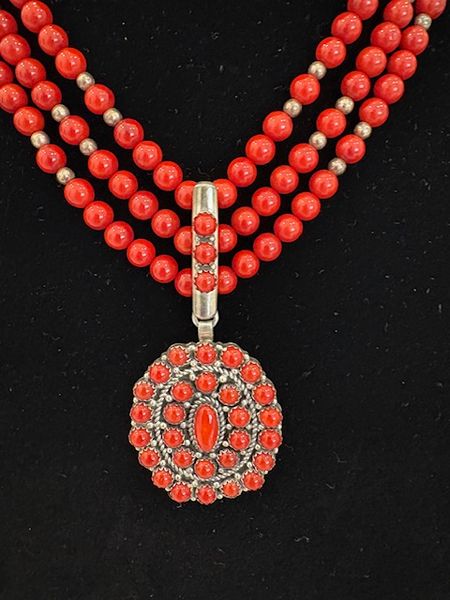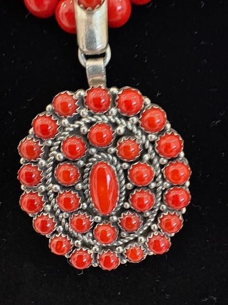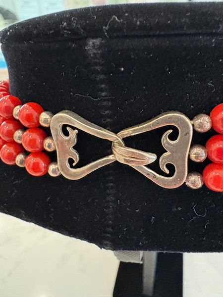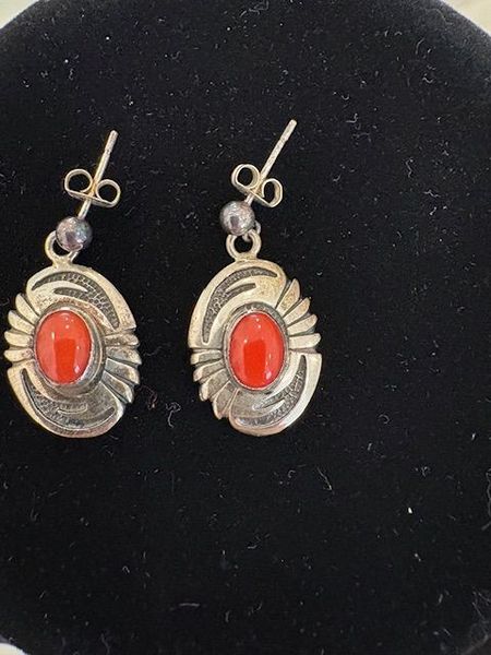 Genuine Coral Necklace. Never worn. Clasp is sterling silver. Included are coral earrings and sterling silver mounted.