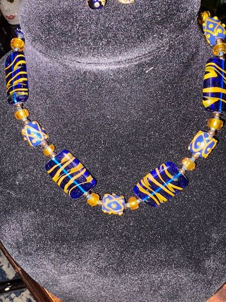 Milada Necklace & Matching Earrings Gold Plated. Never worn. Necklace is: 17 inches round. Lovely hook on back.