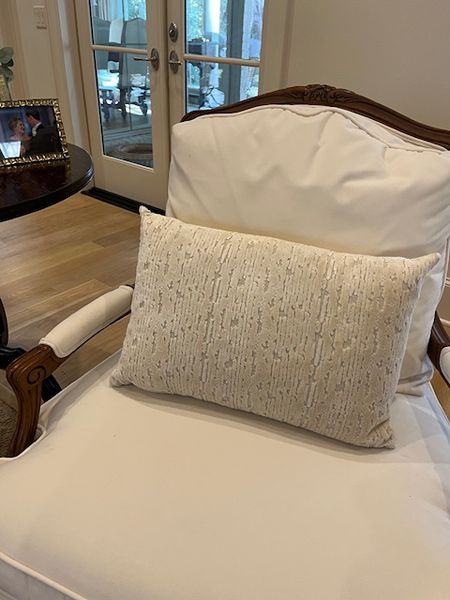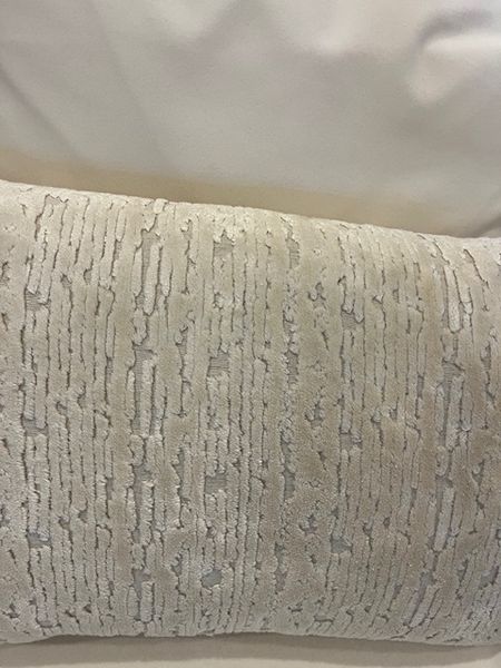 Pair of cream colored velvet lumbar pillows. Measuring 20x14 inches.