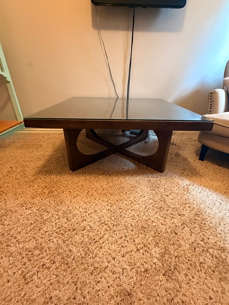 Like new, barely used square 40x40x17 coffee table. Selling because we found a vintage piece we preferred. Has been sitting in guest room for months, unused.