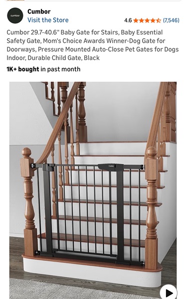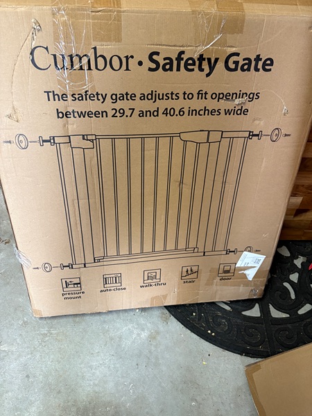 Cumbur Self closing safety gate expands from 29.7 up to 40.6 inches.