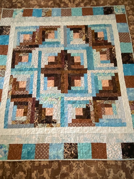 Brown/aqua throw. Size: 50" X 54". $60.00.