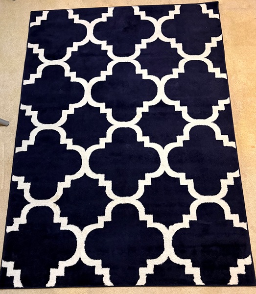 5' 7' navy and white area rug. It is in good condition. Can meet around The Woodlands.