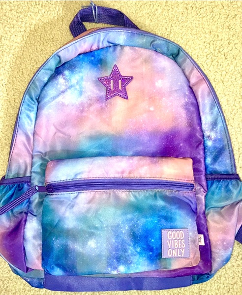 Please note: I have a few of these and although they have the same design and color scheme, the fronts are not exact replicas. So one bag may have more purple in the galaxy design while the next has more pink.