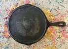 Unmarked, as far as I can tell. Measures 10” across without handle. Very heavy!…$50 FIRM