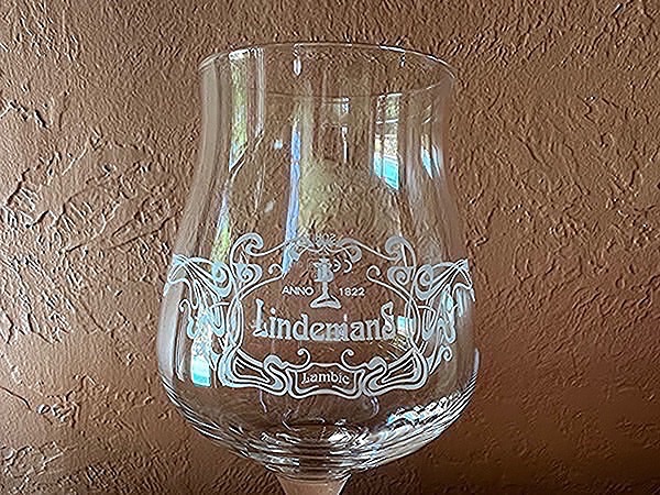 Elegant Lindemans Lambic glass with intricate design. New!…$5 firm