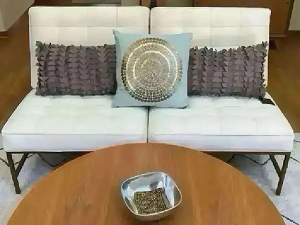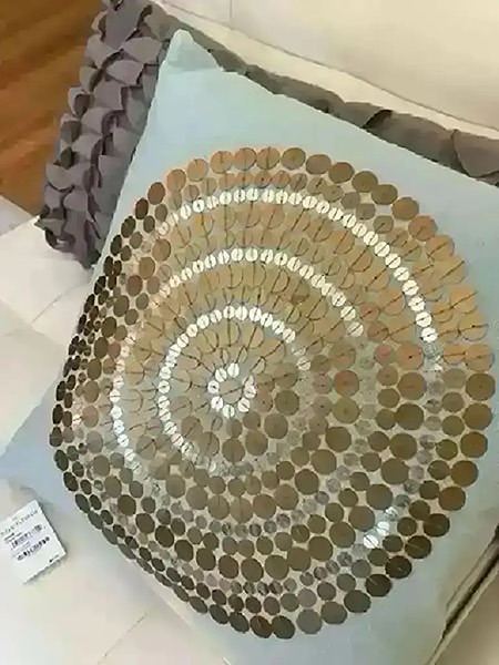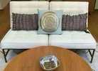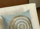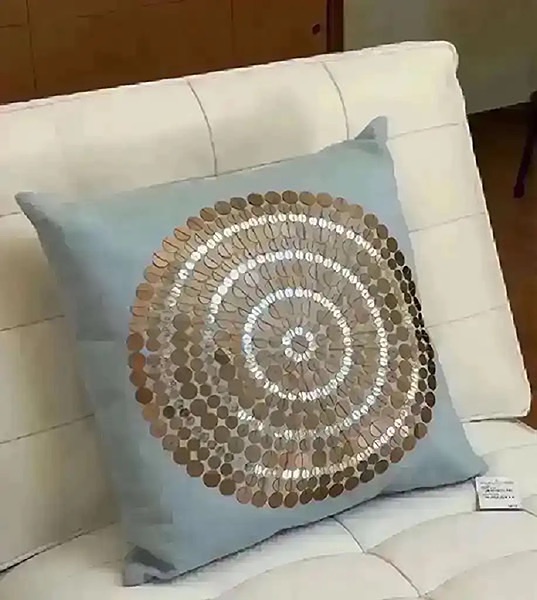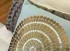 Light blue fabric with beautiful sequin detail. Poly fill, 18” x 18”, Stored in plastic. New with tag! (Orig. $48)…$35 firm