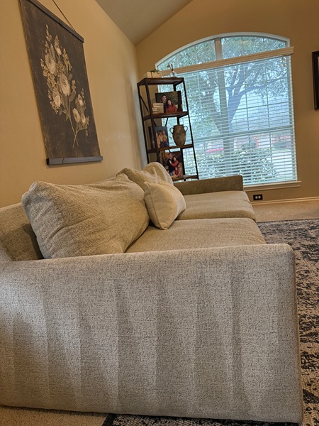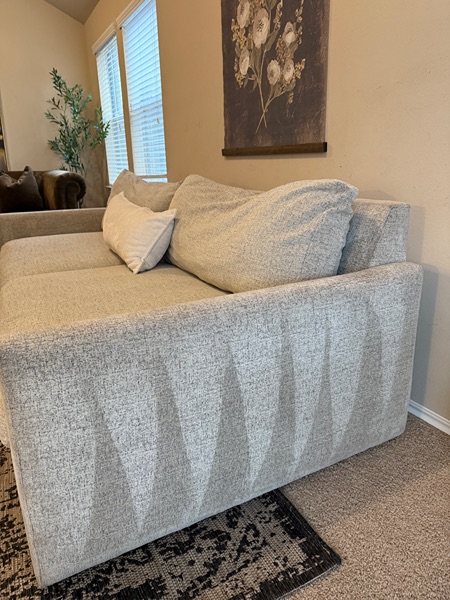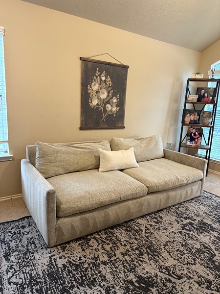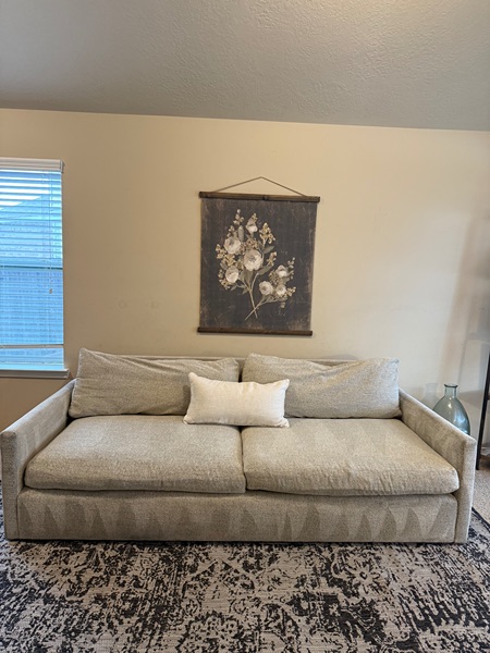 Arhaus Sofa from the Kipton Collection. It is in great condition. Plush cushions (feather blended) and dense foam that makes it super comfortable. Top cushions are not down feather. There’s no rips or stains.