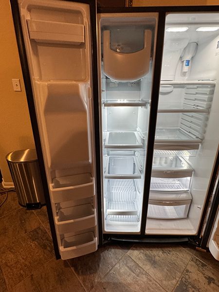 25.3 CU.FT SIDE BY SIDE REFRIGERATOR, LIKE NEW CONDITION. 36IN WIDE, 35IN DEEP, 70IN TALL. NEW WATER FILTER, WATER AND ICE DOOR DISPENSER, LOTS OF ICE. EVERYTHING IN GREAT CONDITION, EVERYTHING WORKS LIKE NEW...