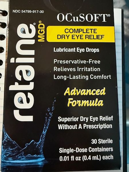 7 unopened boxes of Retaine MGD OCuSOFT lubricant eye drop at $10 each. ($70) Current Amazon Price is $25/box. Dr. switched me to a prescription med.
