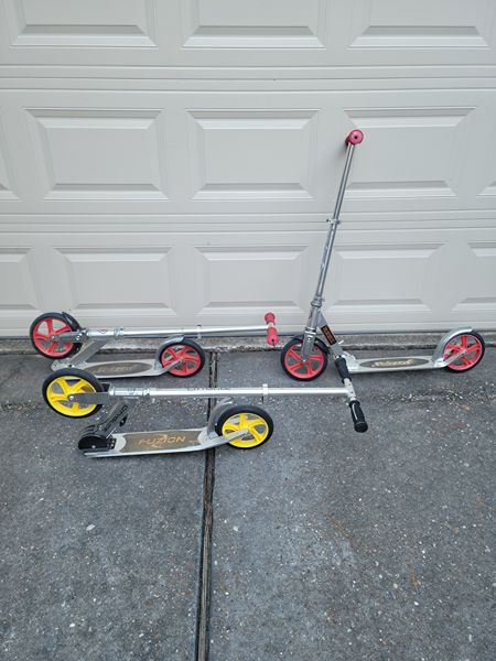 Not electric. Price is per scooter, or $50 for all three. Two are Razor brand. These were used by the family, and I have used one to go to the mailbox down the street! I changed the bearings in some of them, the grips could use replacing.
