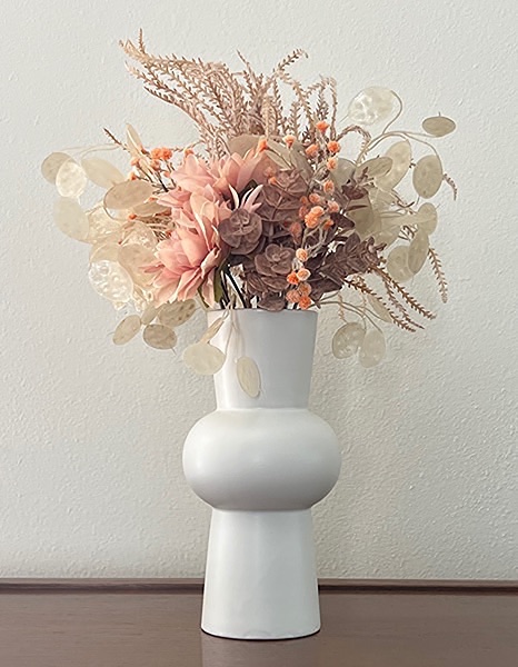 White vase with assorted arrangement. Approx. 20” tall…$25 firm