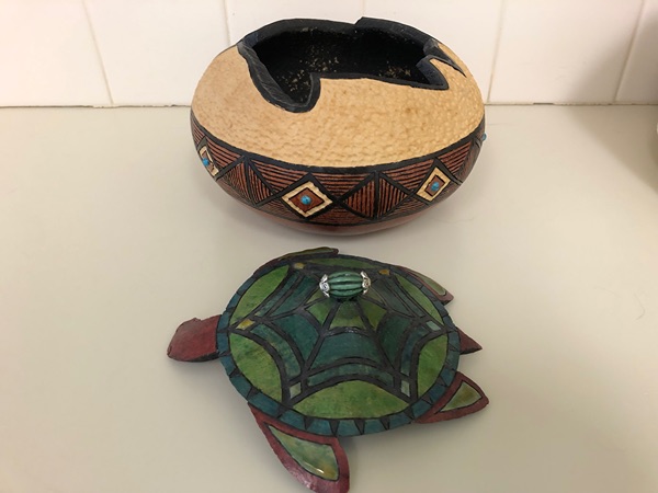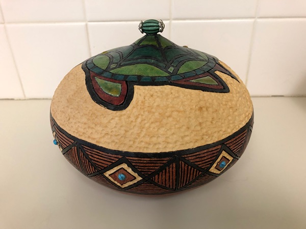 Measures 6 inches Tall. 8 inches in diameter. Crafted by local Palm Springs artist , Lawrence Dorn. Excellent condition. Asking $12.00.