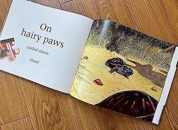 Provides textual clues in rhyme and progessive visual clues in the form of jigsaw puzzle pieces to help the reader determine who is creeping through the woods toward a small figure lying on the beach.