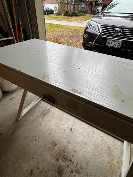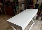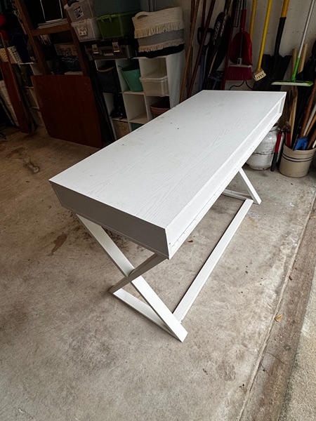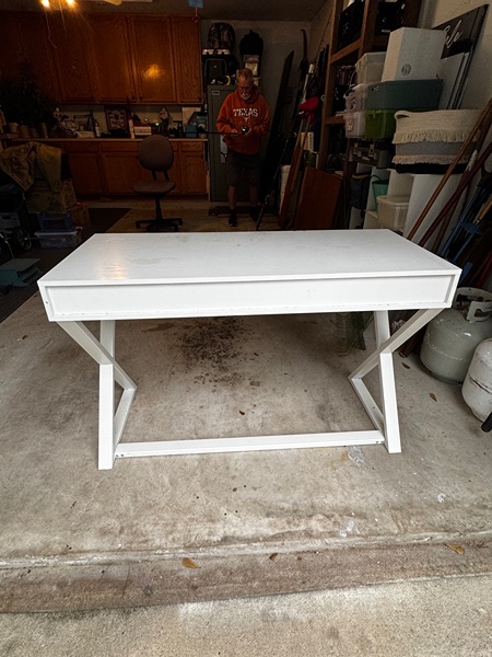 White desk 47 x 20, bottom is metal. 3 drawers. Nice solid desk.