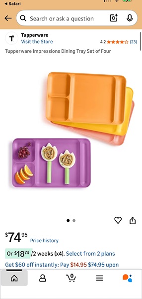 Tupperware Divided Food Trays Lot Of 4 Pastel Translucent Perfect 4 Kids & elderly!