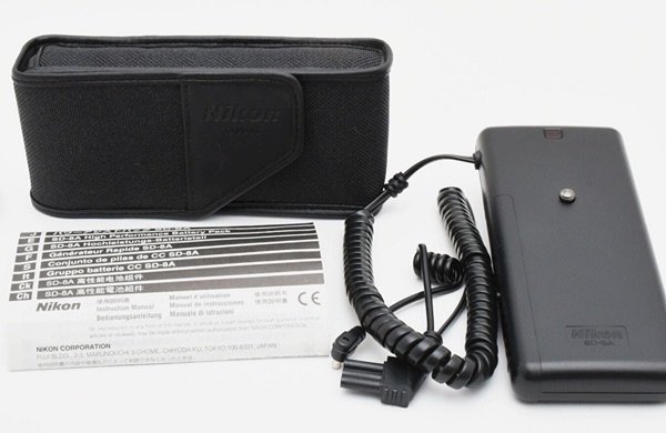 The SD-8A is designed for use with the SB-800, SB-80DX and SB-27 to shorten flash recycling time and enhance flash capacity. It uses six AA batteries.