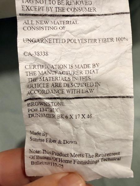 Nice large pillow insert 46" long 17". Tall 6" deep per tag is overstuffed so may be deeper