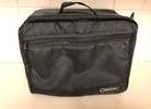 Black vinyl storage carrying case. Strap for carrying and secure zipper. Measures 12 x 9 x 6 inches. Holds 24 CDs. Can have other uses. Very good condition. Asking $3.00.