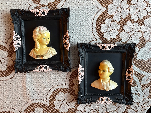 Set of 3 vintage and very nice ceramic antique wall art. Has been in our family since 1950's.