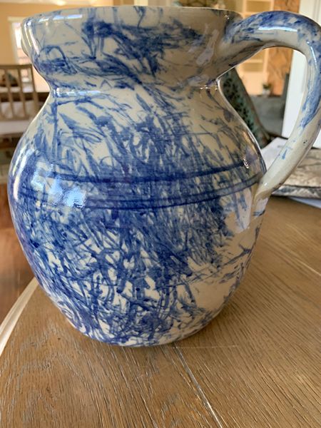 Jerry Brown folk pottery pitcher, signed & dated. Jerry Brown, a noted Alabama folk potter, is known for his blue "sponge" or "splatter" glaze.