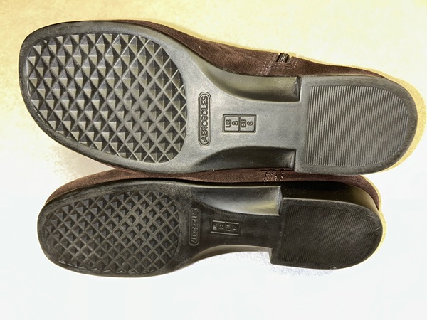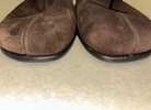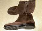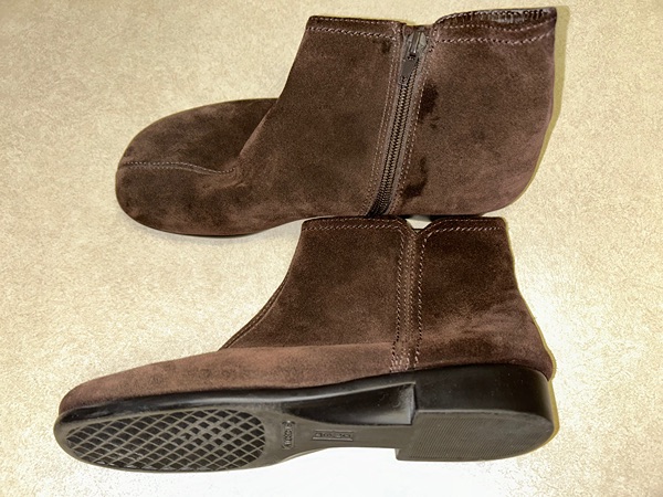 These are low heeled, thin soled ankle booties in overall good condition from smoke free home in women’s size 8M. Model is duble trouble, made with leather on the upper portion. Stock photo shows same pair in blue because I could not find this pair in the chocolate brown color I have for sale.
